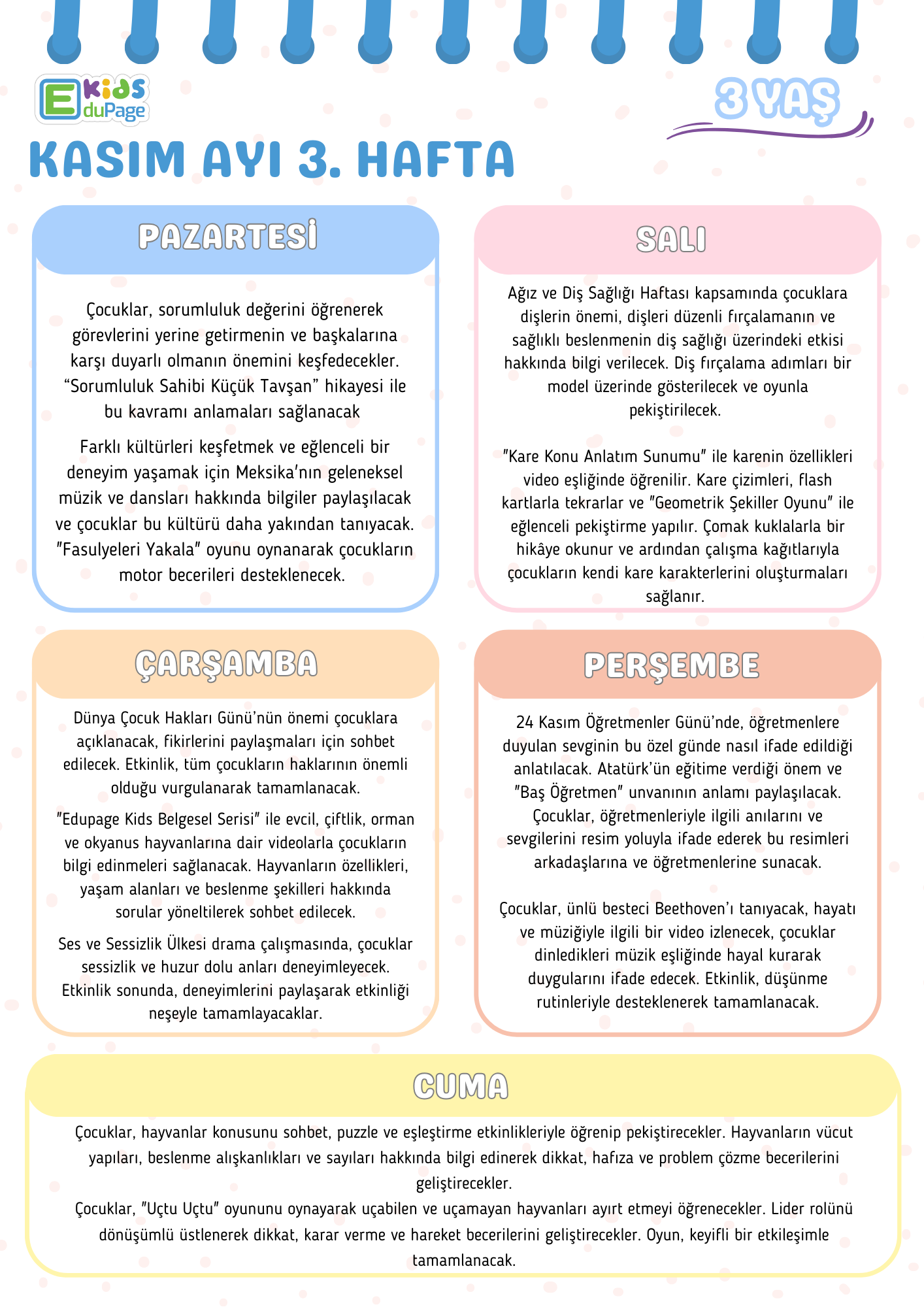 Bu konuya dair içeriklerimize ve etkinlik önerilerimize 3 Yaş Belirli Gün ve Haftalar Başlığı altında yer alan Kare Konu Anlatım Sunumu konusuna tıklayarak erişebilirsiniz.